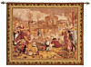 Silk screened tapestries are also known as serigraphic tapestries. Each silk-screened tapestry is serigraphed onto irregularly woven fabric (wool, cotton or linen). Considerable labour is required with this process, including hand-painting to finish the details. Silk screen tapestries appear antiqued and aged giving them the look and feel of tapestries that hang in museums today. This tapestry is fully lined incorporating a rod pocket on the back for hanging with an exclusive Heirloom flush-to-wall hanging rod. Alternatively, this tapestry can be hung with a decorative pole of your choice.