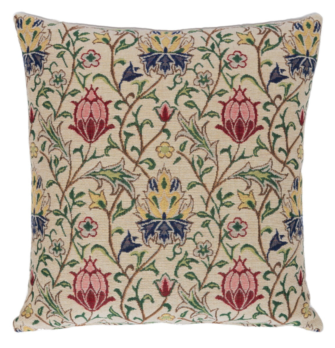 Tapestry Pillow finely woven by skilled weavers on Jacquard looms. This fine quality pillow cover is meticulously hand-finished in England with a luxurious British Velvet back and concealed zip. Supplied as Pillow Cover Only (requires 20x20 filler not supplied).