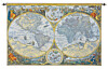 This beautiful tapestry is a woven reproduction of an early 17th Century world map originally designed by the Dutch cartographer Jan Baptist Vrients (15521612). Vrients was greatly influenced by Abraham Ortelius (1528-1622) the most prominent cartographer of the 16th Century. It shows the world split into two hemispheres and is framed by intricate pictorial scenes typical of other maps of the same period.