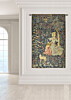 The tapestry's complexity extends beyond mere wool preparation. Its background boasts a 'mille-fleurs' pattern, characterized by an abundance of flowers and foliage, lending depth and richness to the composition. This intricate backdrop, popular in the 15th century, may have drawn inspiration from the tradition of scattering cut flowers during festive occasions, adding to the tapestry's narrative and aesthetic appeal.